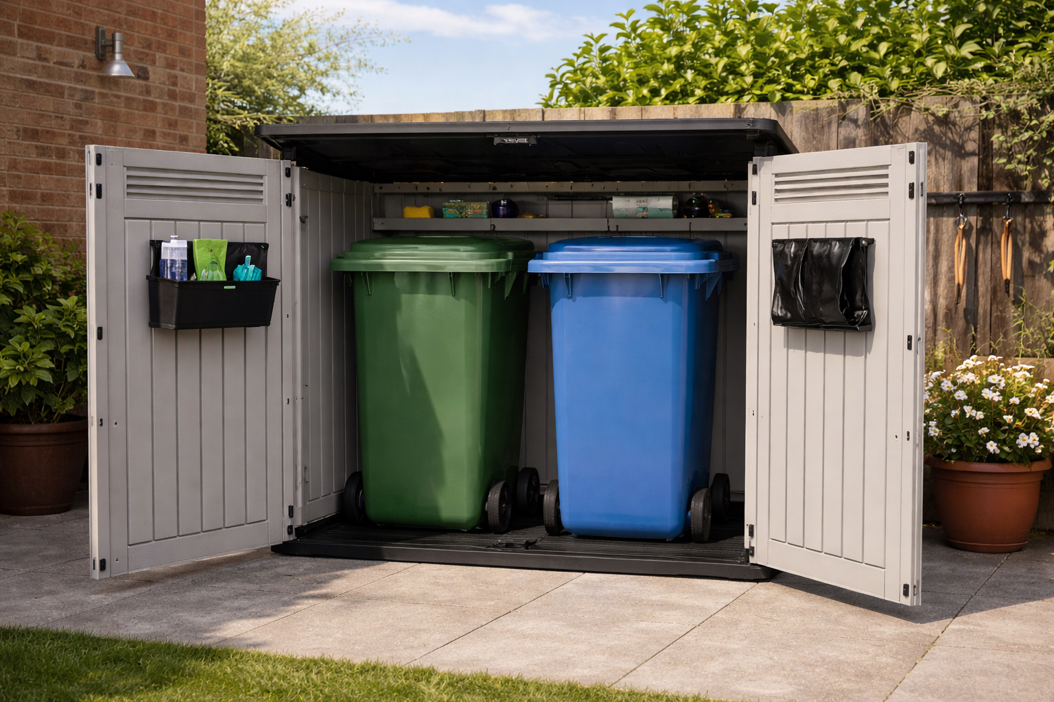 Capacity:Ā 1200 Litres (Fits two 240L wheelie bins).