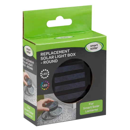 This replacement solar light box for Smart Garden solar lanterns is designed to keep your favourite garden lantern functioning efficiently. It features both white and colour-changing LED lighting modes, allowing you to customise the lighting effect to suit your outdoor décor. The unit includes a built-in solar panel on the top, which charges the included rechargeable AA battery using direct sunlight during the day. As dusk approaches, the light automatically switches on, providing convenient and energy-efficient illumination without the need for wiring or electricity. Finished in black, this compact replacement unit is easy to install and helps extend the life of your existing Smart Garden solar lantern. It measures approximately H 3 cm with a diameter of 8 cm and comes with one rechargeable AA battery and a 1-year guarantee.
